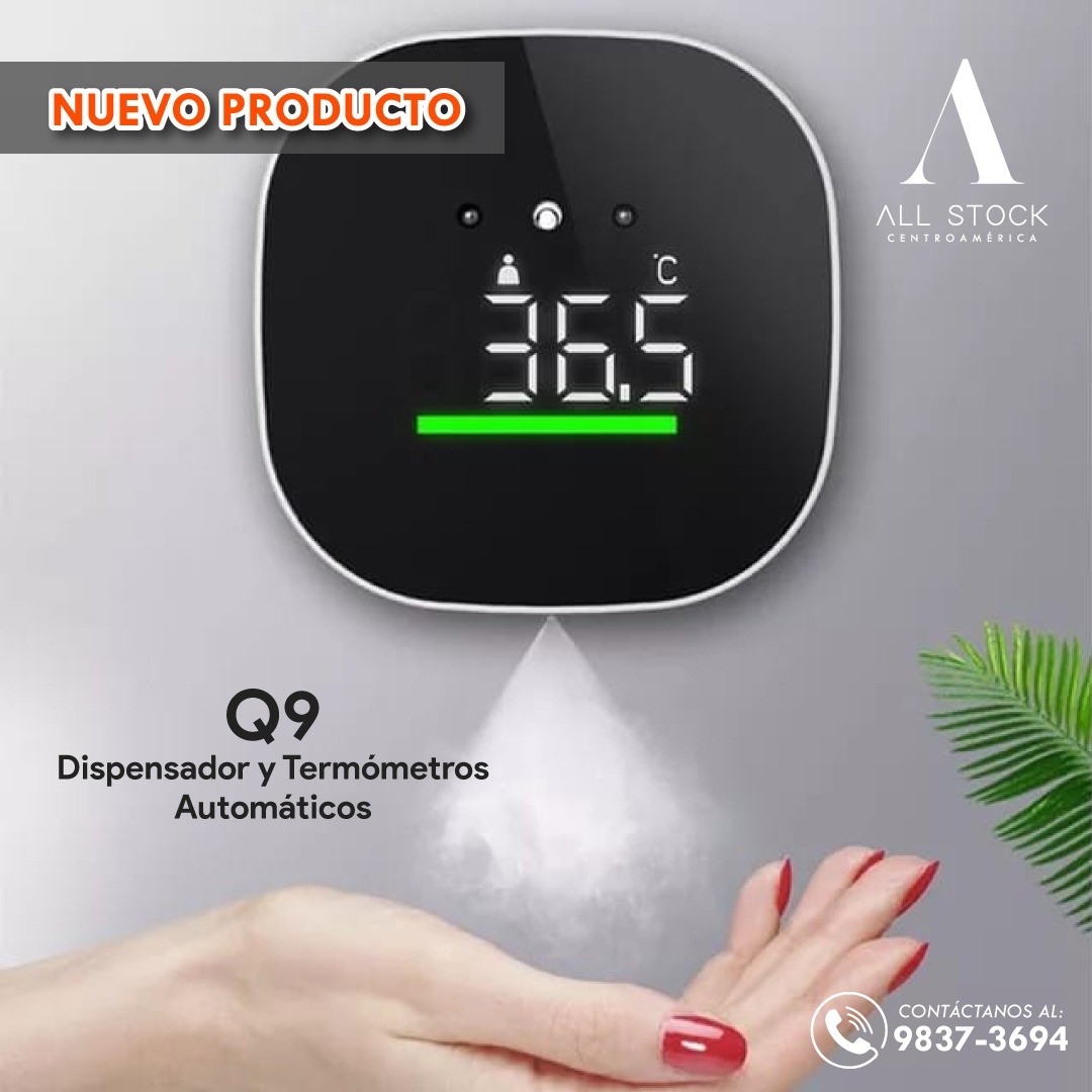 Q9 - Dispensador y Termometro Automatico 2n1 = Para uso en hoteles, escuelas, oficinas, centros comerciales, etc.
